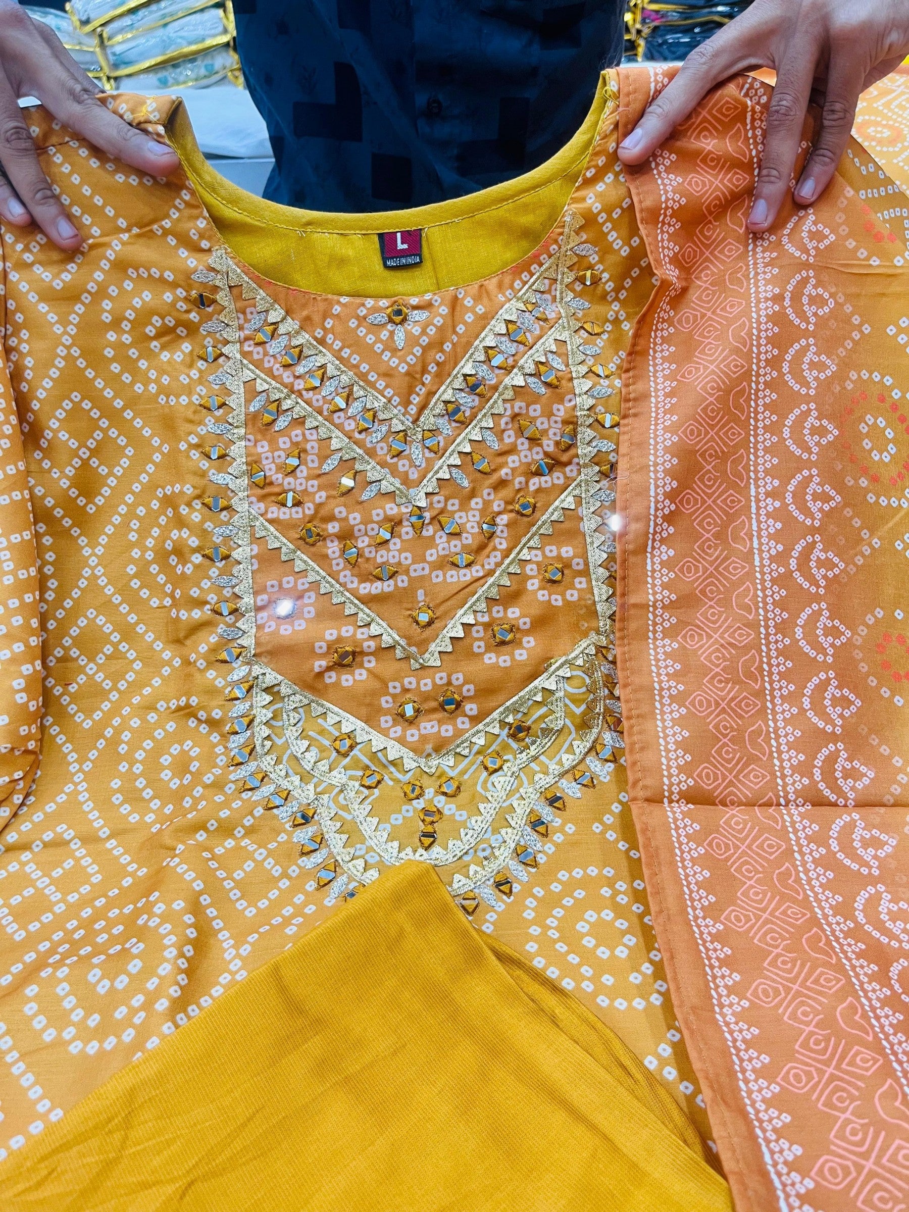 Yellow cotton kurti pant set with dupatta